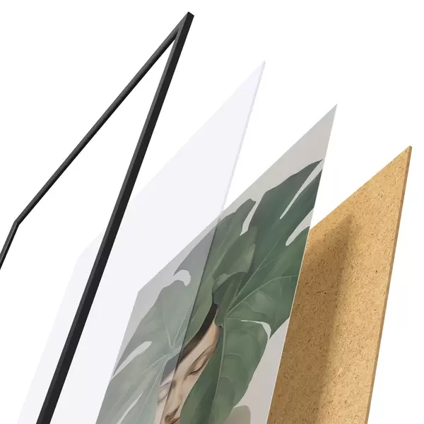 Постер складається з рами, оргскла, надрукованого зображення та підкладки з ДСП. Завдяки кріпленням на звороті плакат можна одразу ж повісити на стіну.