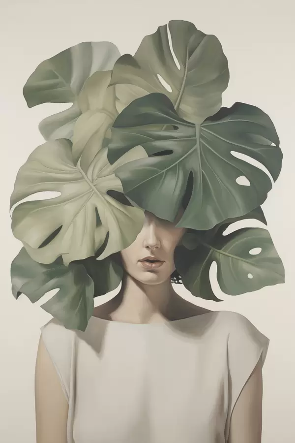 Постер на стіну Абстрактний портрет дівчини з листям монстери Nr f47336