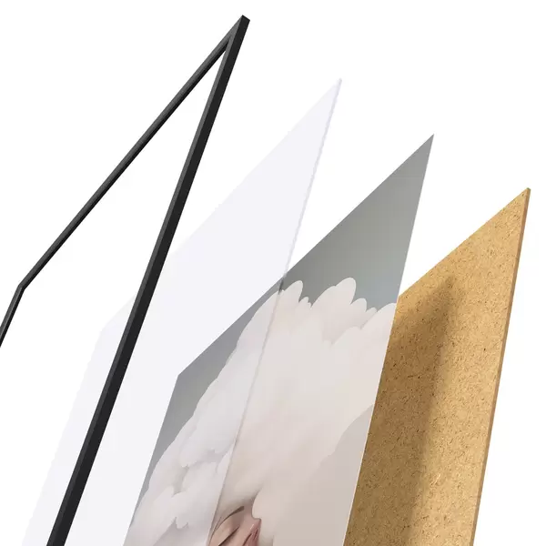 Постер складається з рами, оргскла, надрукованого зображення та підкладки з ДСП. Завдяки кріпленням на звороті плакат можна одразу ж повісити на стіну.