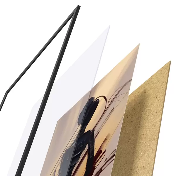 Постер складається з рами, оргскла, надрукованого зображення та підкладки з ДСП. Завдяки кріпленням на звороті плакат можна одразу ж повісити на стіну.
