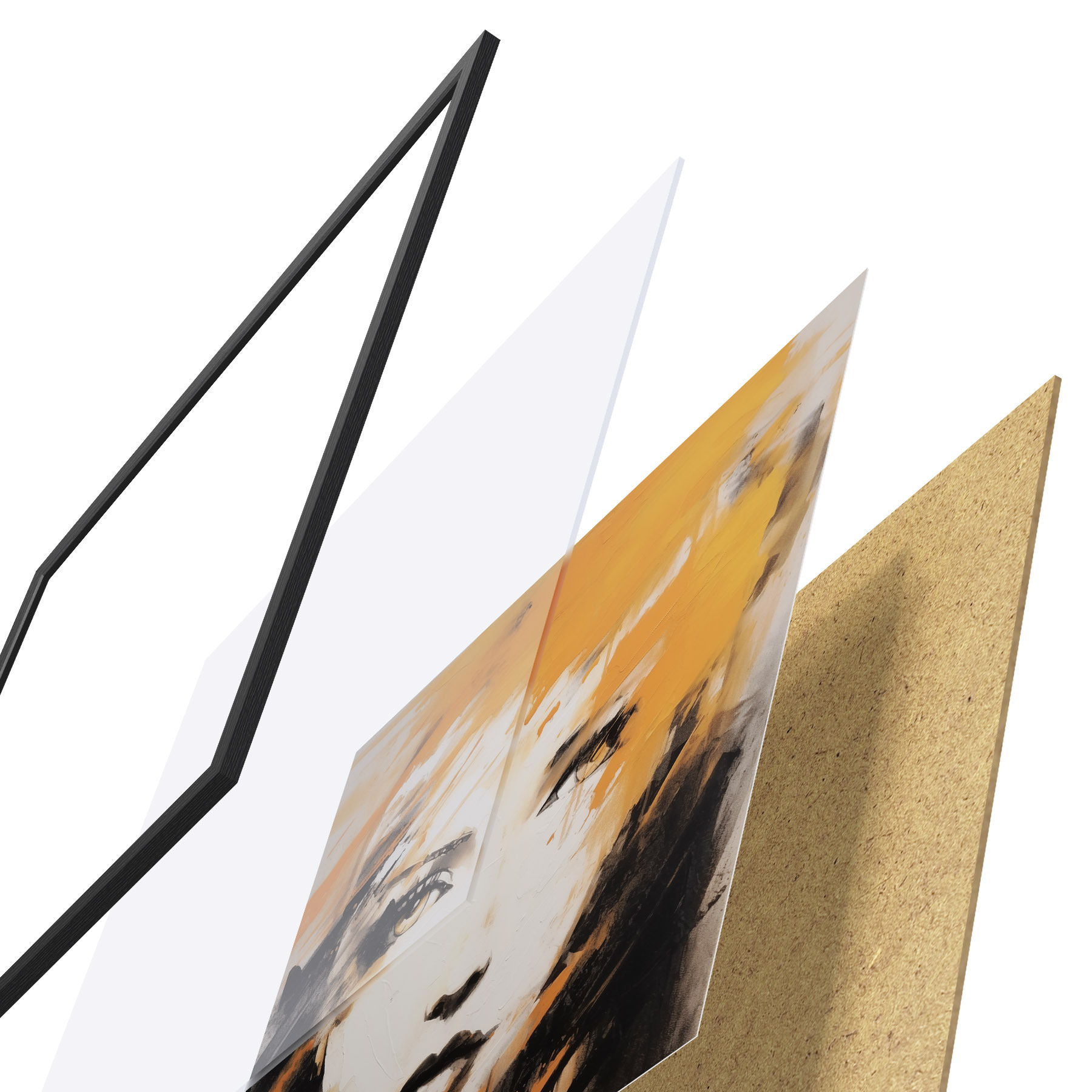 Постер складається з рами, оргскла, надрукованого зображення та підкладки з ДСП. Завдяки кріпленням на звороті плакат можна одразу ж повісити на стіну.