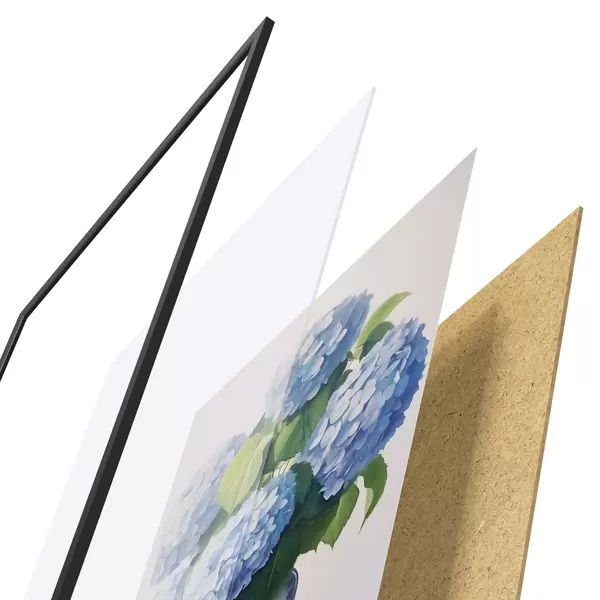 Постер складається з рами, оргскла, надрукованого зображення та підкладки з ДСП. Завдяки кріпленням на звороті плакат можна одразу ж повісити на стіну.