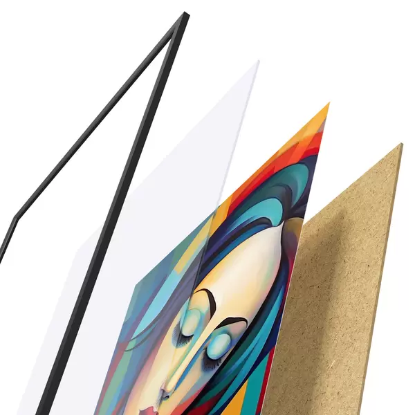 Постер складається з рами, оргскла, надрукованого зображення та підкладки з ДСП. Завдяки кріпленням на звороті плакат можна одразу ж повісити на стіну.