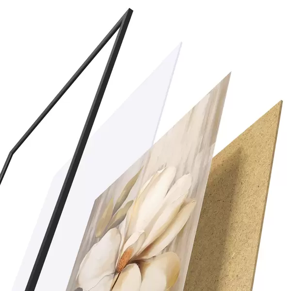 Постер складається з рами, оргскла, надрукованого зображення та підкладки з ДСП. Завдяки кріпленням на звороті плакат можна одразу ж повісити на стіну.