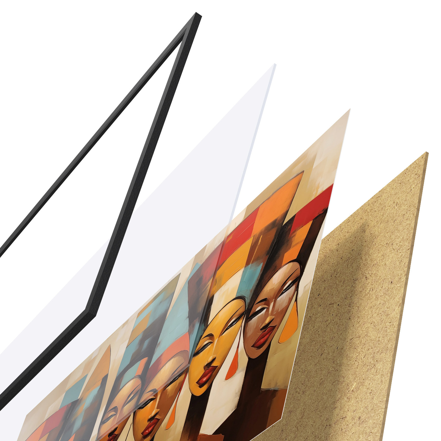 Постер складається з рами, оргскла, надрукованого зображення та підкладки з ДСП. Завдяки кріпленням на звороті плакат можна одразу ж повісити на стіну.