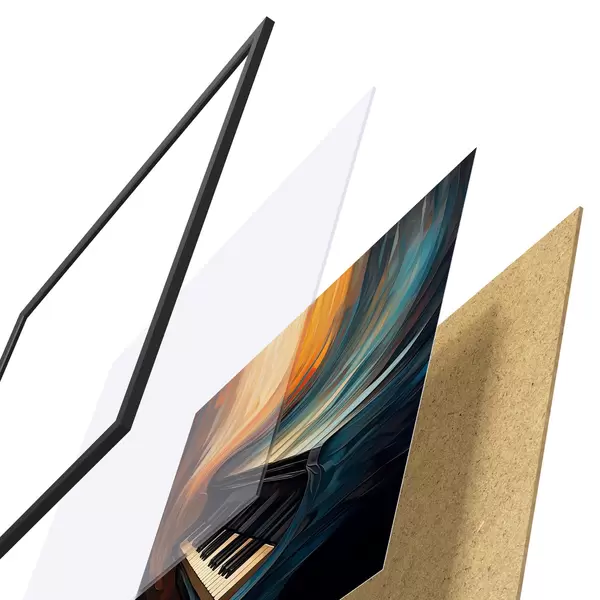 Постер складається з рами, оргскла, надрукованого зображення та підкладки з ДСП. Завдяки кріпленням на звороті плакат можна одразу ж повісити на стіну.