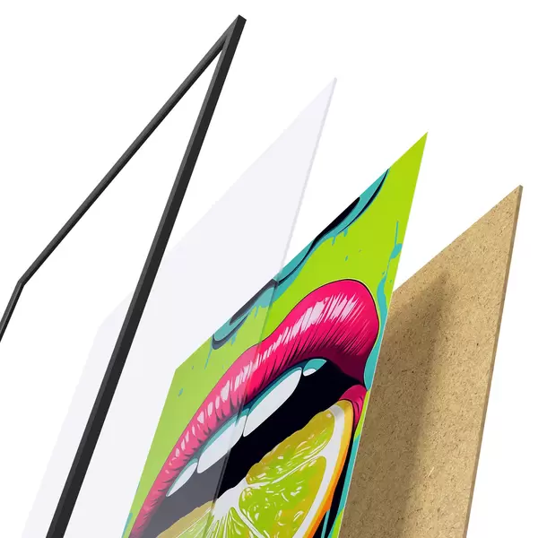 Постер складається з рами, оргскла, надрукованого зображення та підкладки з ДСП. Завдяки кріпленням на звороті плакат можна одразу ж повісити на стіну.
