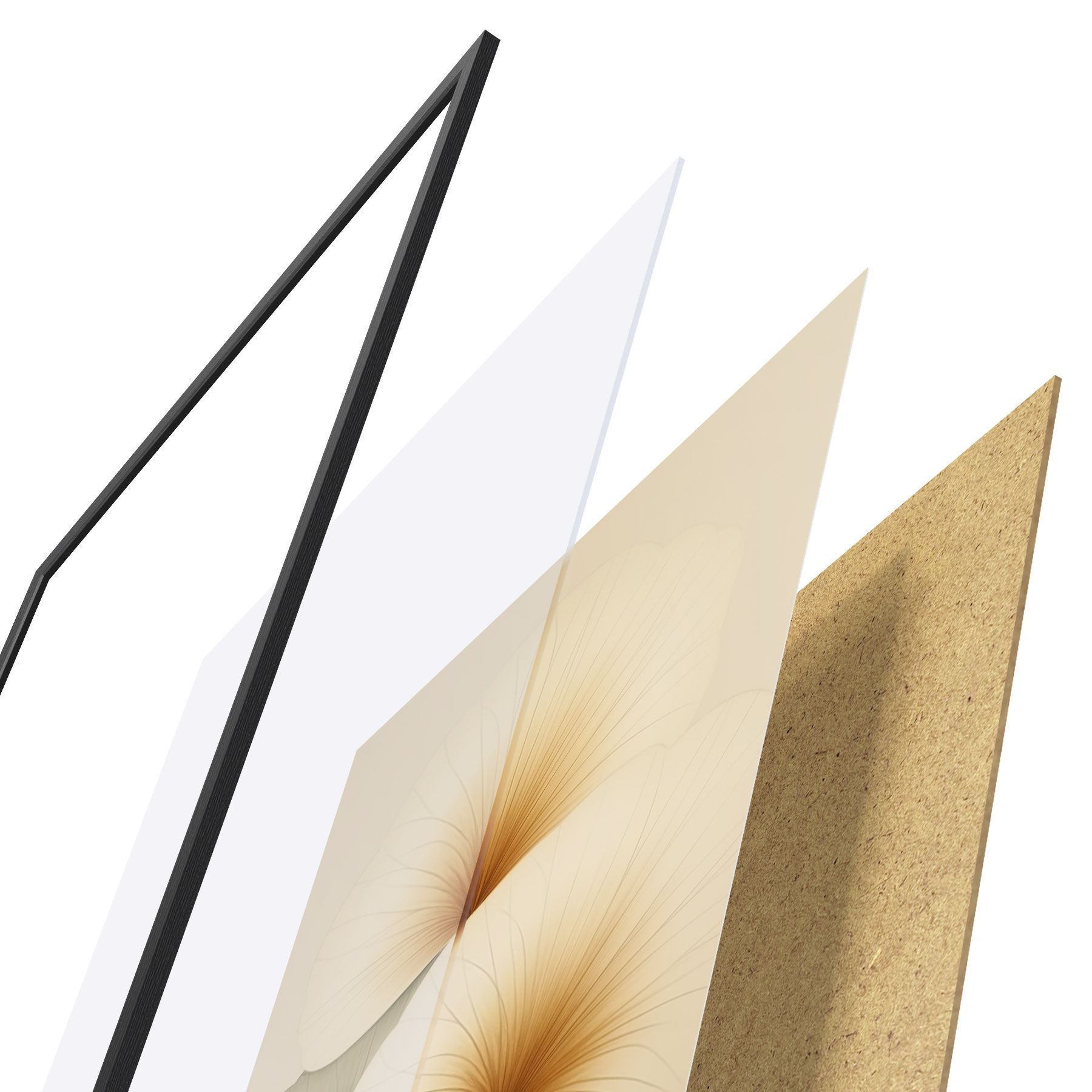 Постер складається з рами, оргскла, надрукованого зображення та підкладки з ДСП. Завдяки кріпленням на звороті плакат можна одразу ж повісити на стіну.