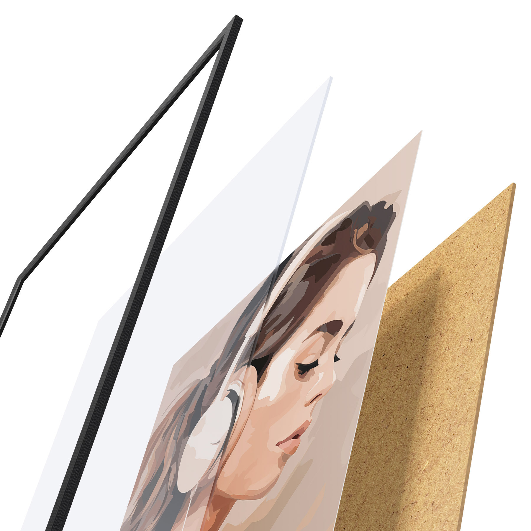 Постер складається з рами, оргскла, надрукованого зображення та підкладки з ДСП. Завдяки кріпленням на звороті плакат можна одразу ж повісити на стіну.