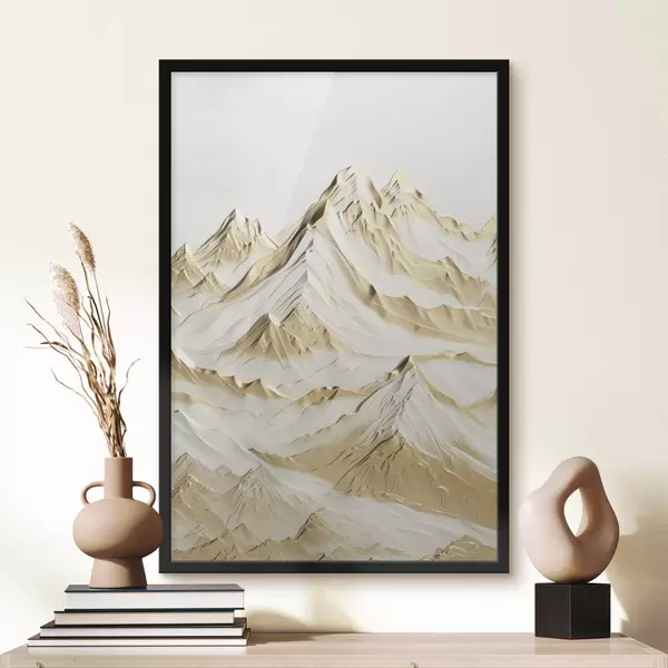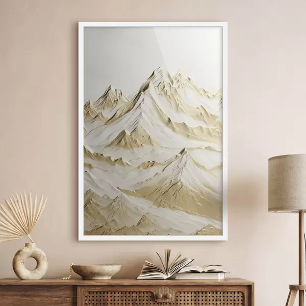 Постер на стіну Краєвид жовтих, засніжених гір з гострими вершинами і глибокими долинами під світлим небом Nr f47420