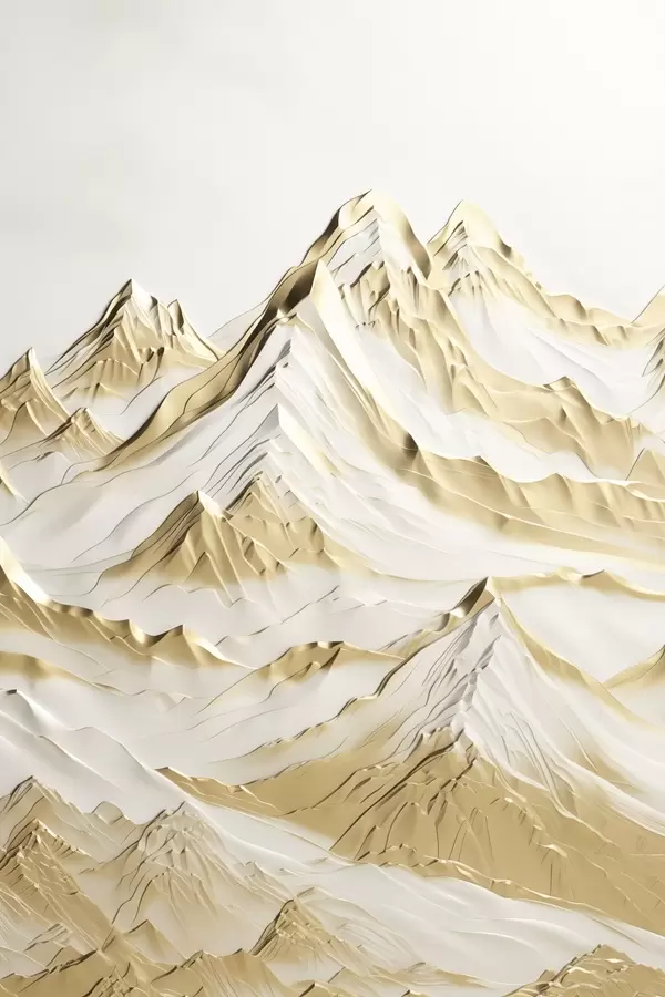 Постер на стіну Краєвид жовтих, засніжених гір з гострими вершинами і глибокими долинами під світлим небом Nr f47420