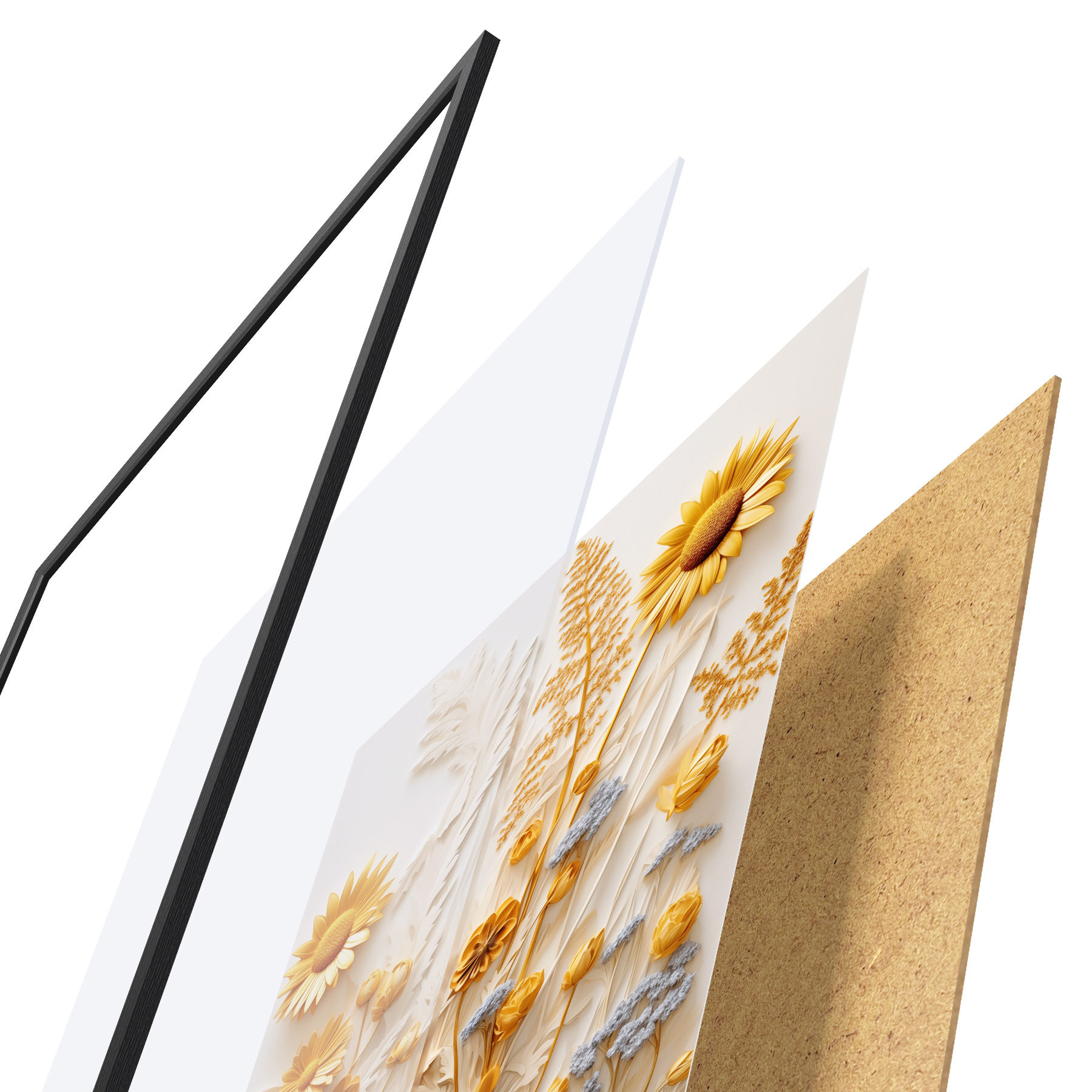 Постер складається з рами, оргскла, надрукованого зображення та підкладки з ДСП. Завдяки кріпленням на звороті плакат можна одразу ж повісити на стіну.