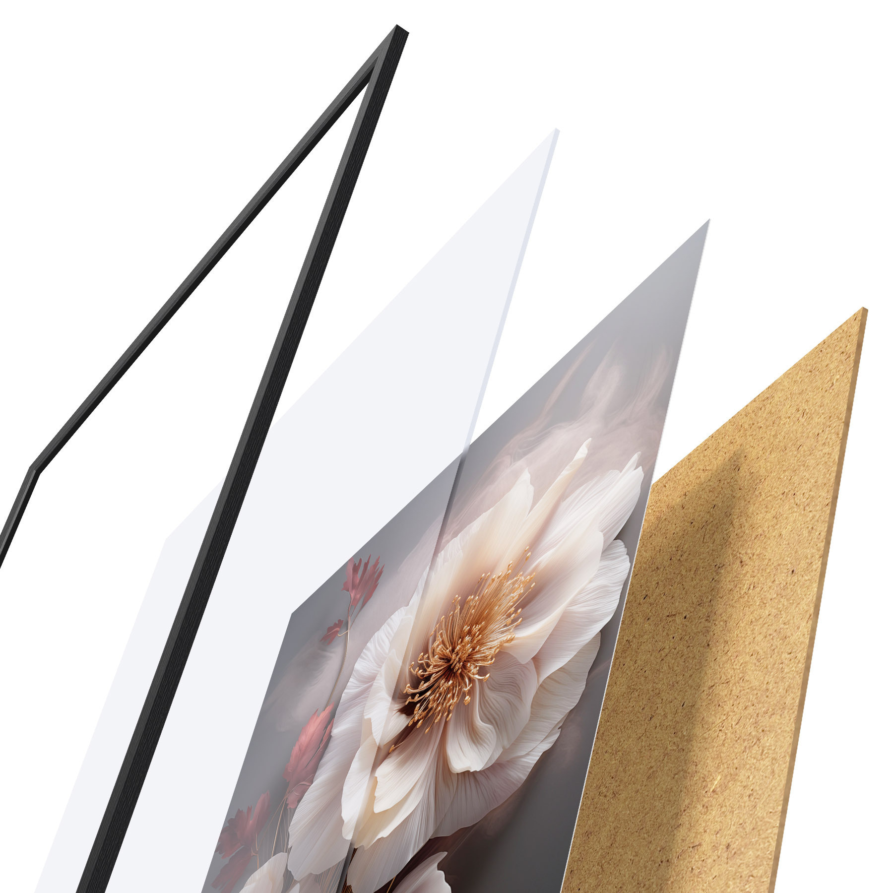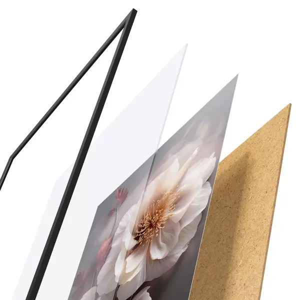 Постер складається з рами, оргскла, надрукованого зображення та підкладки з ДСП. Завдяки кріпленням на звороті плакат можна одразу ж повісити на стіну.