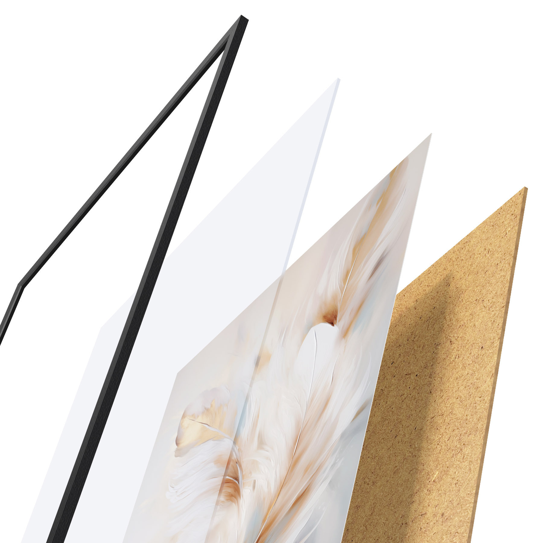Постер складається з рами, оргскла, надрукованого зображення та підкладки з ДСП. Завдяки кріпленням на звороті плакат можна одразу ж повісити на стіну.