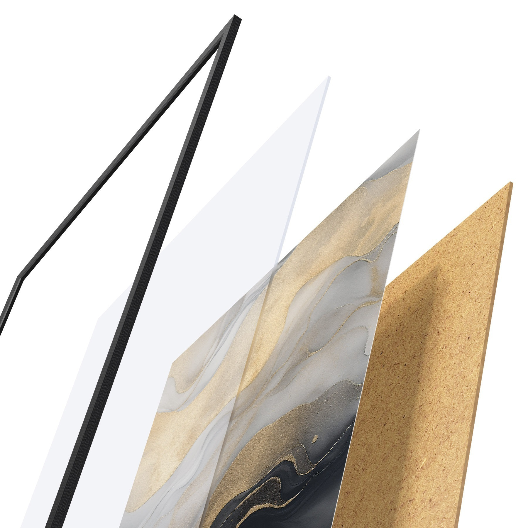 Постер складається з рами, оргскла, надрукованого зображення та підкладки з ДСП. Завдяки кріпленням на звороті плакат можна одразу ж повісити на стіну.