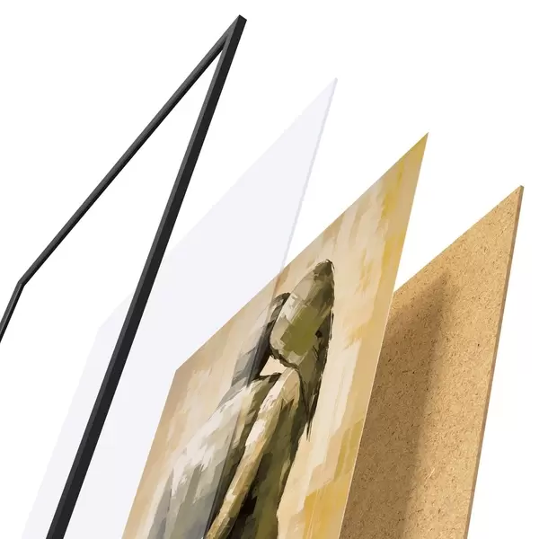 Постер складається з рами, оргскла, надрукованого зображення та підкладки з ДСП. Завдяки кріпленням на звороті плакат можна одразу ж повісити на стіну.