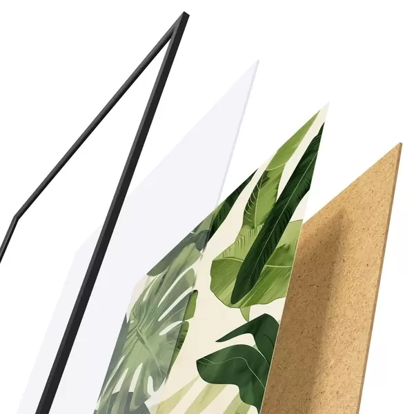 Постер складається з рами, оргскла, надрукованого зображення та підкладки з ДСП. Завдяки кріпленням на звороті плакат можна одразу ж повісити на стіну.