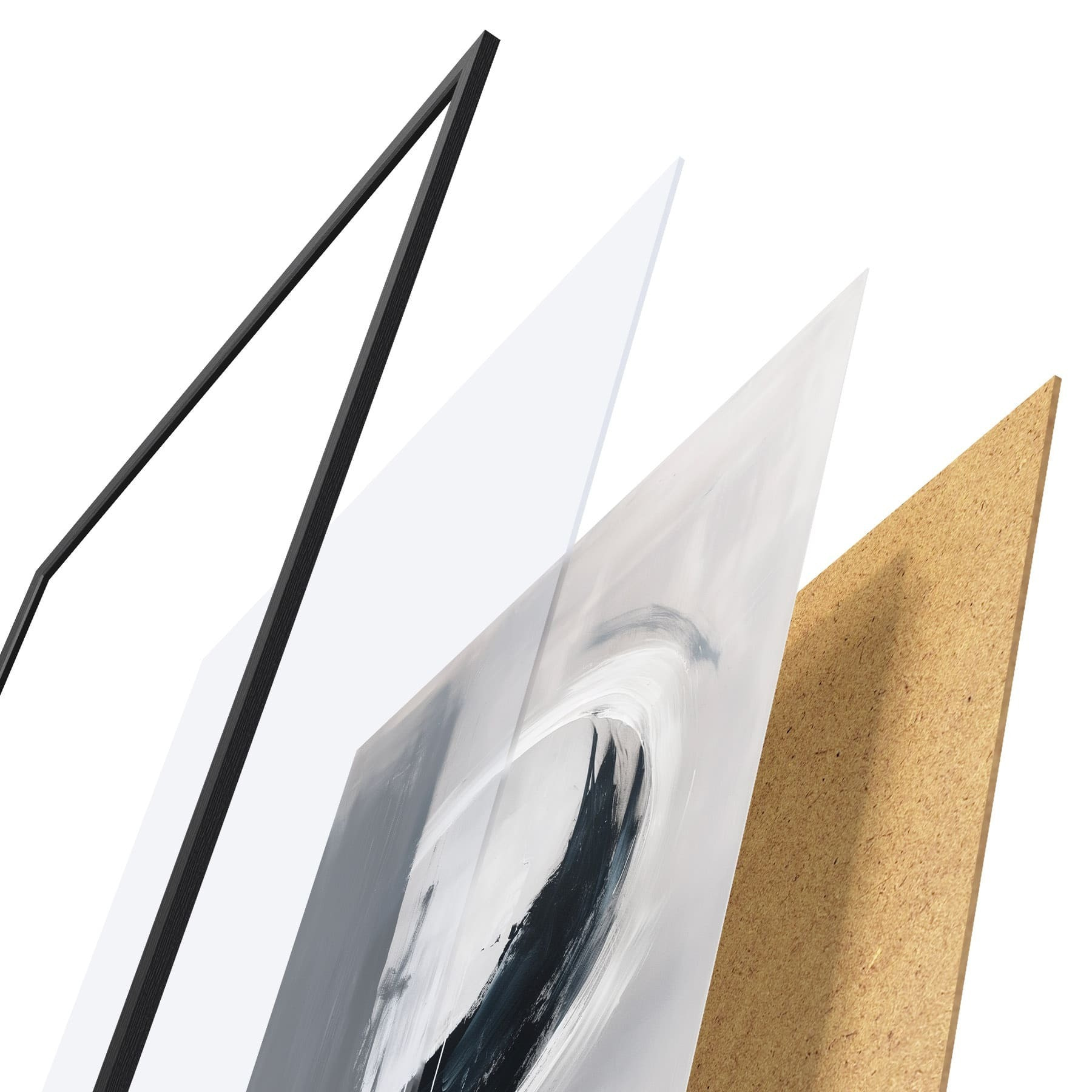 Постер складається з рами, оргскла, надрукованого зображення та підкладки з ДСП. Завдяки кріпленням на звороті плакат можна одразу ж повісити на стіну.