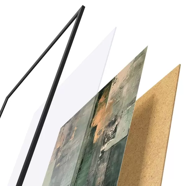 Постер складається з рами, оргскла, надрукованого зображення та підкладки з ДСП. Завдяки кріпленням на звороті плакат можна одразу ж повісити на стіну.