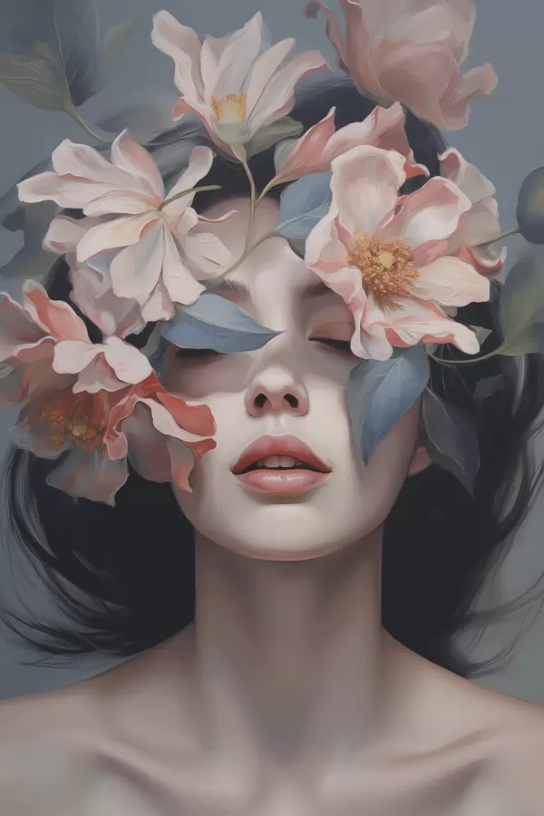 Постер на стіну Абстрактний жіночий портрет з квітами Nr f47488