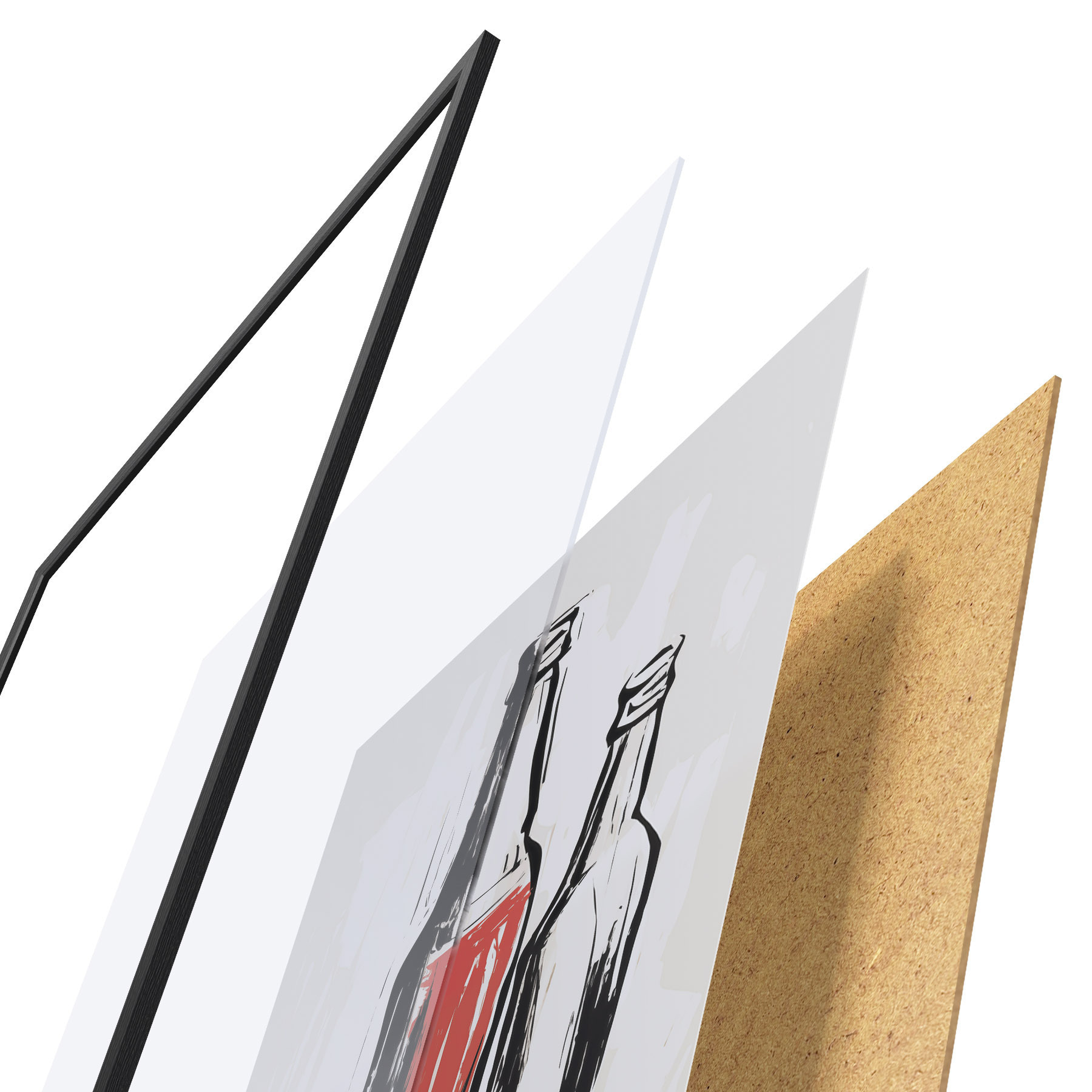 Постер складається з рами, оргскла, надрукованого зображення та підкладки з ДСП. Завдяки кріпленням на звороті плакат можна одразу ж повісити на стіну.