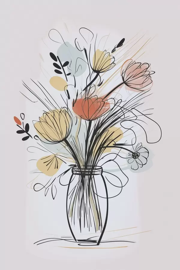 Постер на стіну Квіти у вазі, імітація малюнка Nr f47494