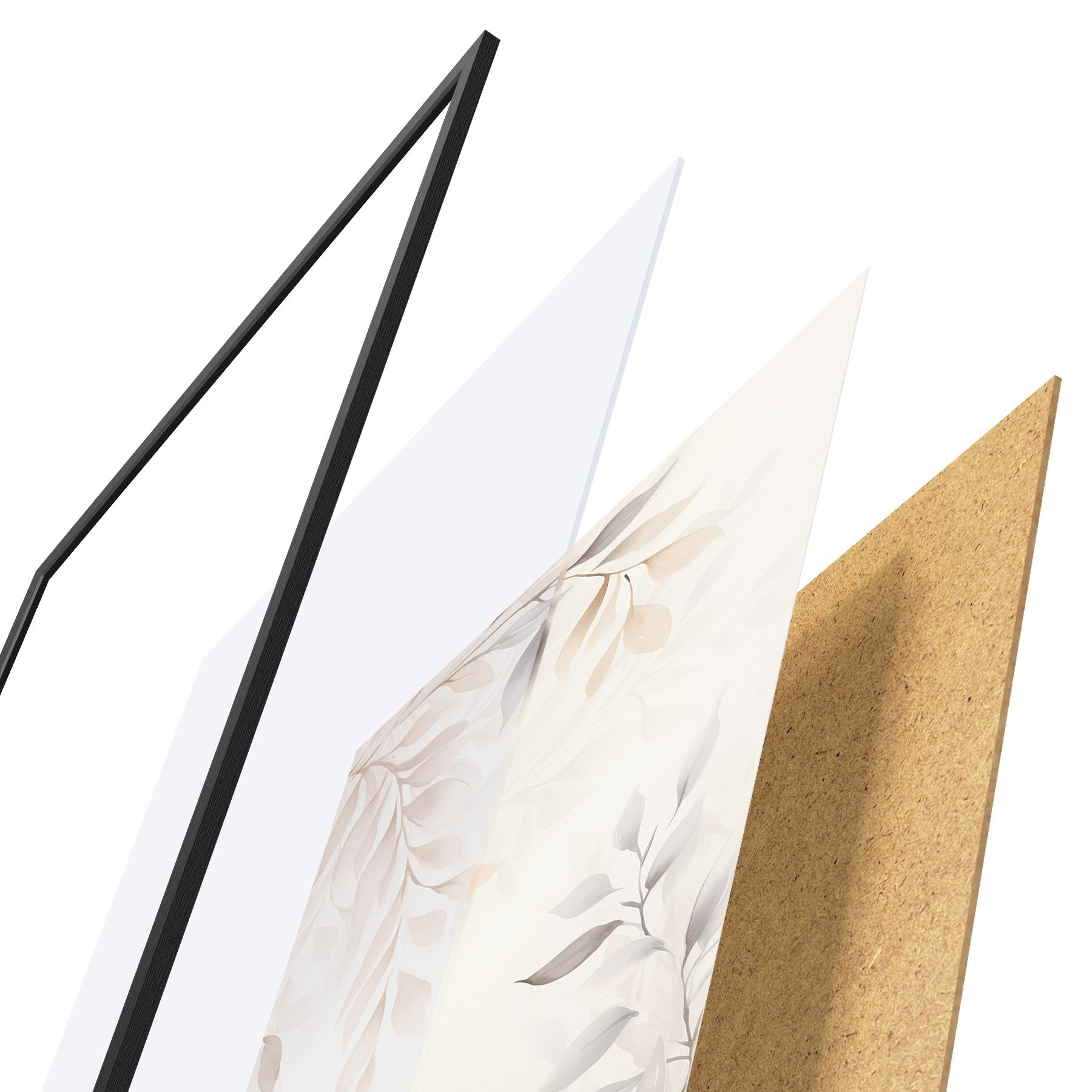 Постер складається з рами, оргскла, надрукованого зображення та підкладки з ДСП. Завдяки кріпленням на звороті плакат можна одразу ж повісити на стіну.