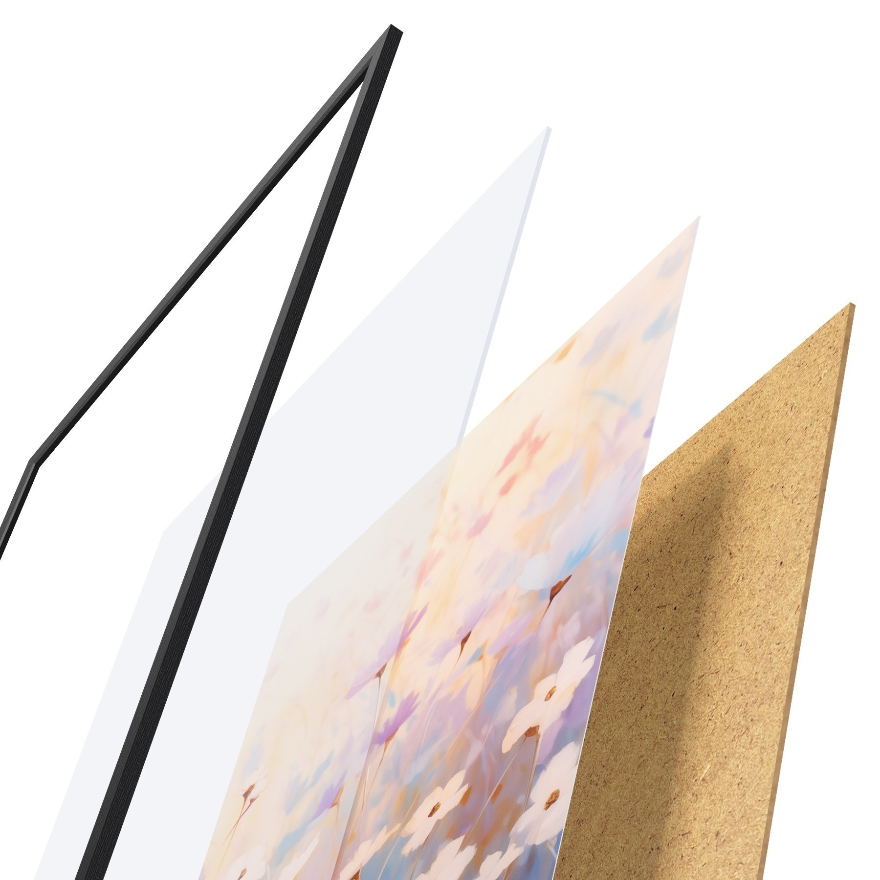 Постер складається з рами, оргскла, надрукованого зображення та підкладки з ДСП. Завдяки кріпленням на звороті плакат можна одразу ж повісити на стіну.