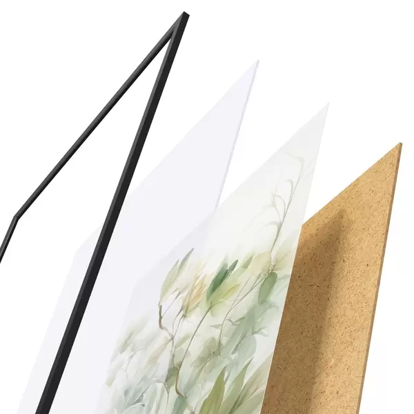 Постер складається з рами, оргскла, надрукованого зображення та підкладки з ДСП. Завдяки кріпленням на звороті плакат можна одразу ж повісити на стіну.