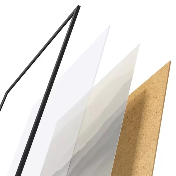 Постер складається з рами, оргскла, надрукованого зображення та підкладки з ДСП. Завдяки кріпленням на звороті плакат можна одразу ж повісити на стіну.