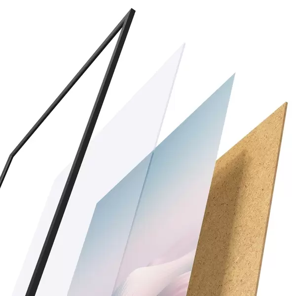 Постер складається з рами, оргскла, надрукованого зображення та підкладки з ДСП. Завдяки кріпленням на звороті плакат можна одразу ж повісити на стіну.