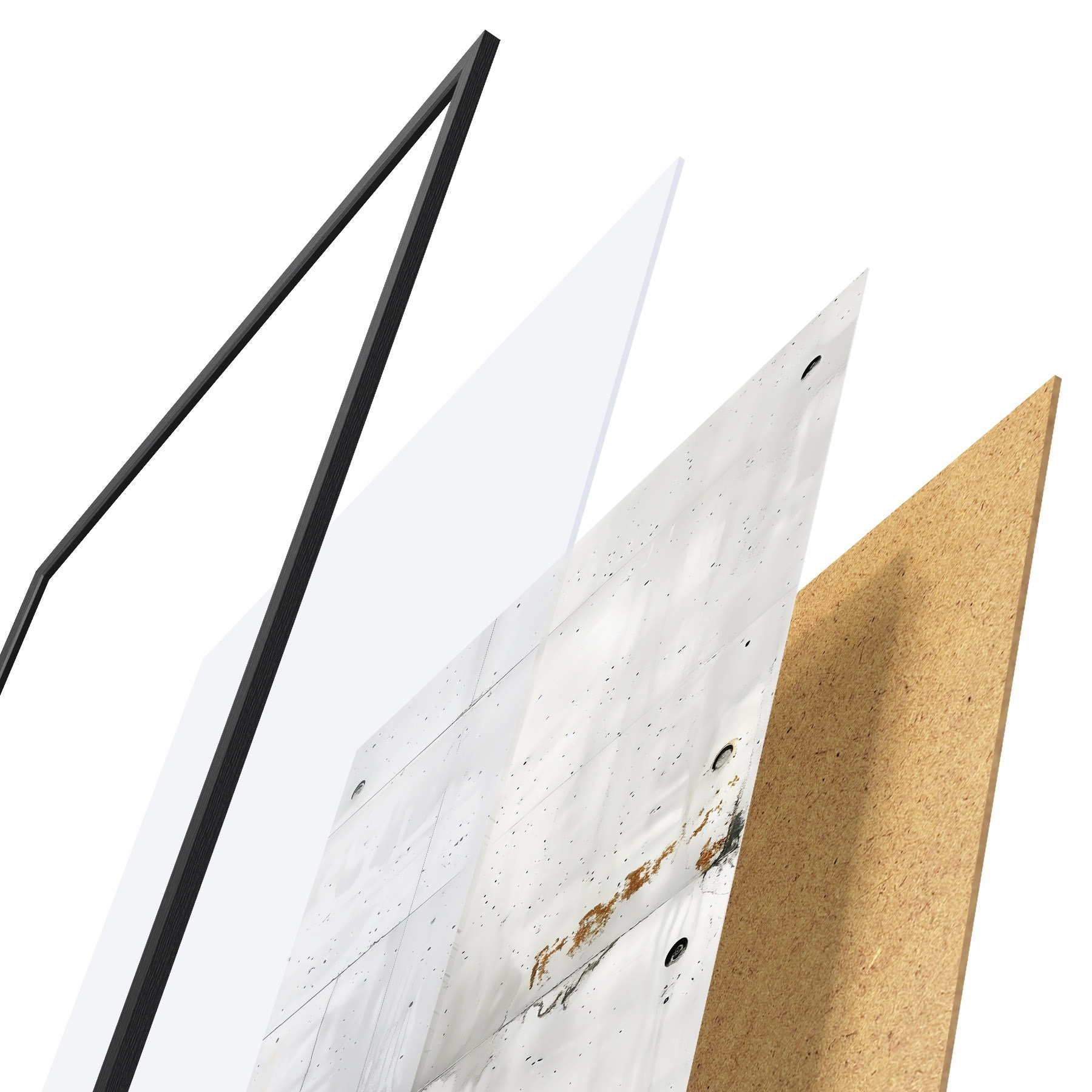 Постер складається з рами, оргскла, надрукованого зображення та підкладки з ДСП. Завдяки кріпленням на звороті плакат можна одразу ж повісити на стіну.