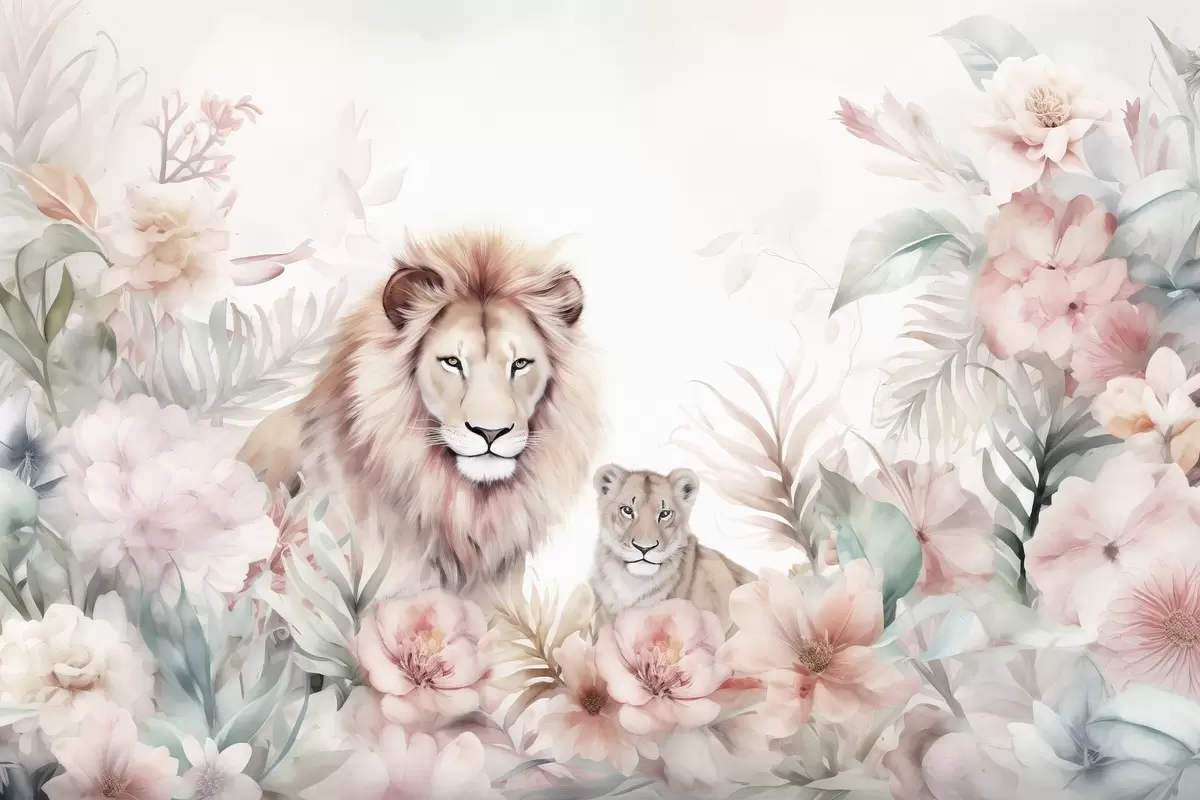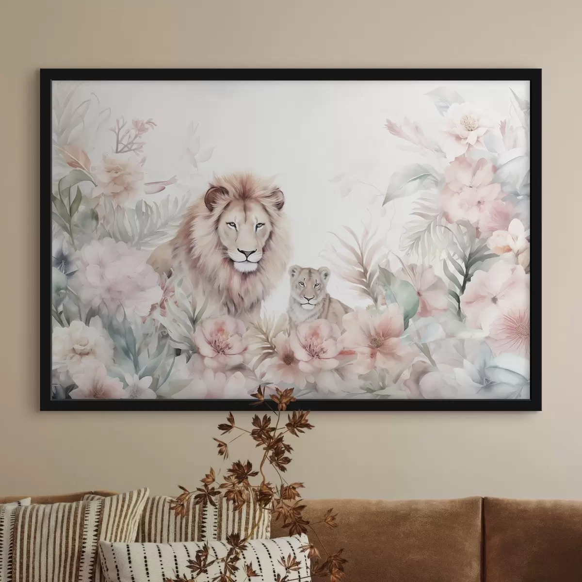 Постер на стіну Леви в тропічних хащах, імітація акварелі Nr f47640