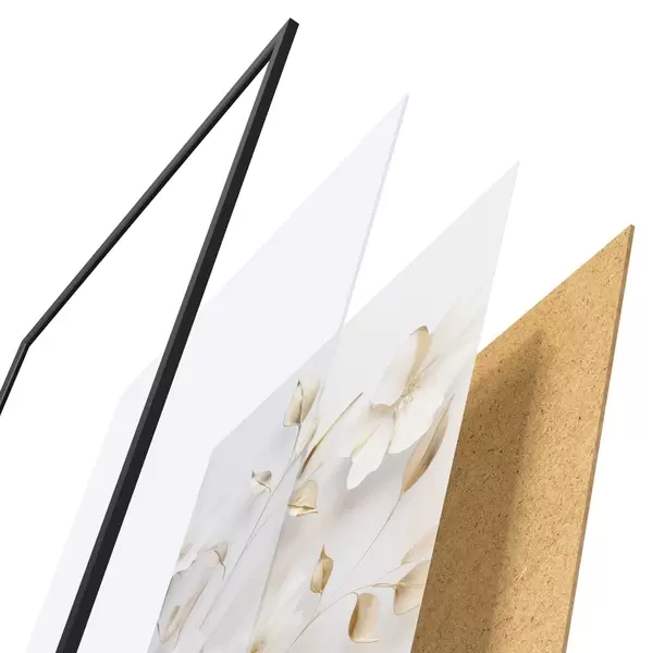 Постер складається з рами, оргскла, надрукованого зображення та підкладки з ДСП. Завдяки кріпленням на звороті плакат можна одразу ж повісити на стіну.