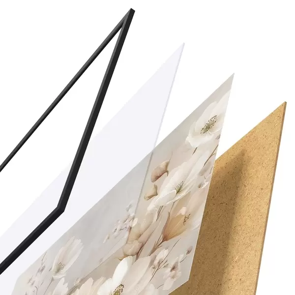 Постер складається з рами, оргскла, надрукованого зображення та підкладки з ДСП. Завдяки кріпленням на звороті плакат можна одразу ж повісити на стіну.