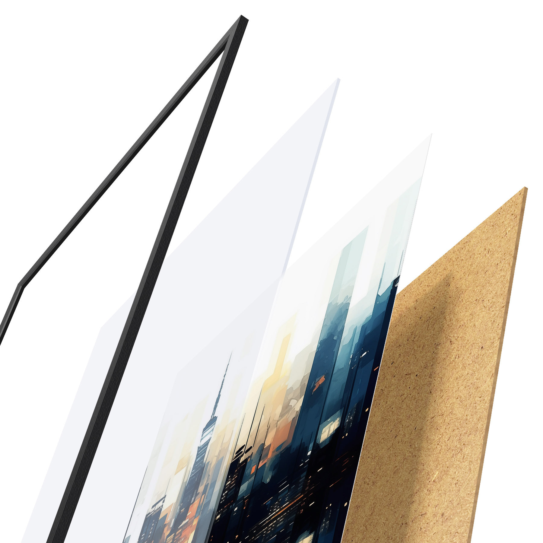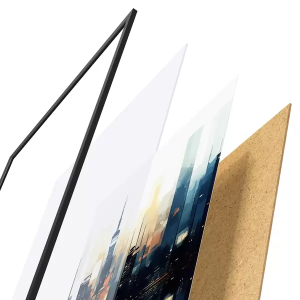 Постер складається з рами, оргскла, надрукованого зображення та підкладки з ДСП. Завдяки кріпленням на звороті плакат можна одразу ж повісити на стіну.
