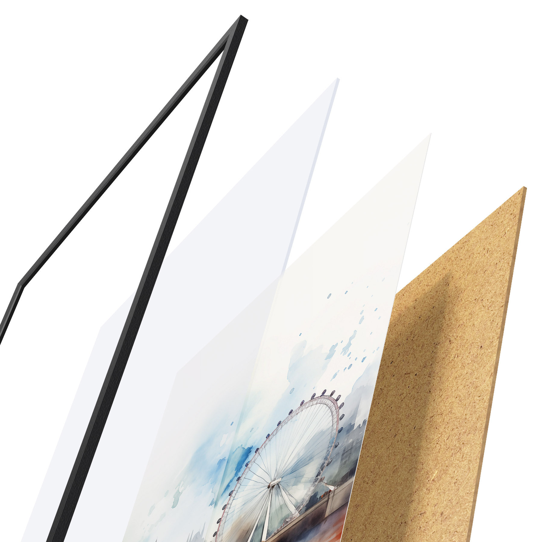 Постер складається з рами, оргскла, надрукованого зображення та підкладки з ДСП. Завдяки кріпленням на звороті плакат можна одразу ж повісити на стіну.