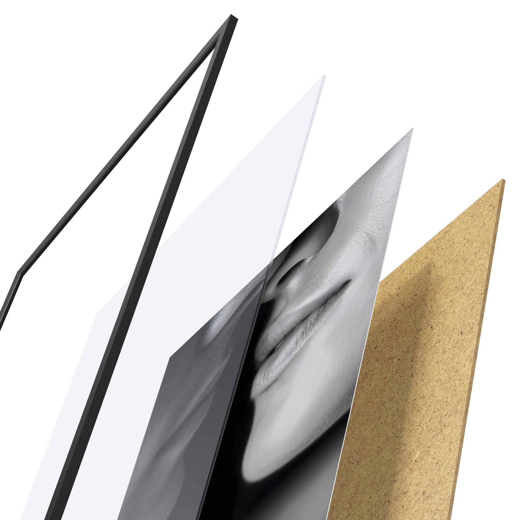 Постер складається з рами, оргскла, надрукованого зображення та підкладки з ДСП. Завдяки кріпленням на звороті плакат можна одразу ж повісити на стіну.