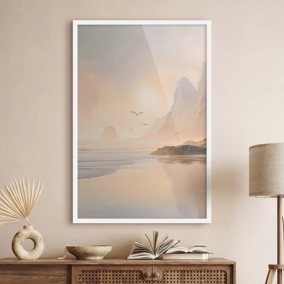 Постер на стіну світанок над океаном на тлі гір Nr f47690