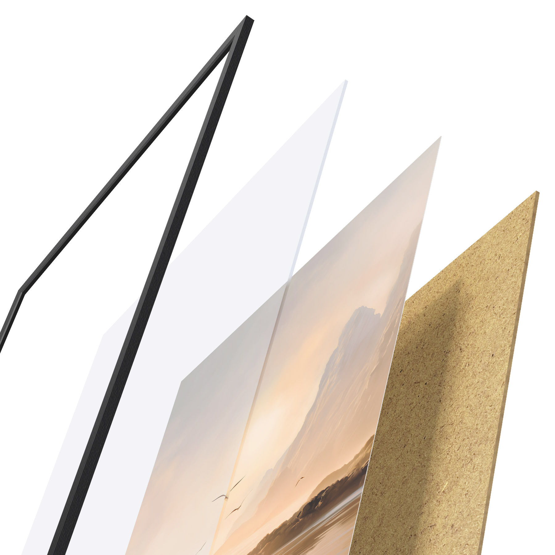 Постер складається з рами, оргскла, надрукованого зображення та підкладки з ДСП. Завдяки кріпленням на звороті плакат можна одразу ж повісити на стіну.