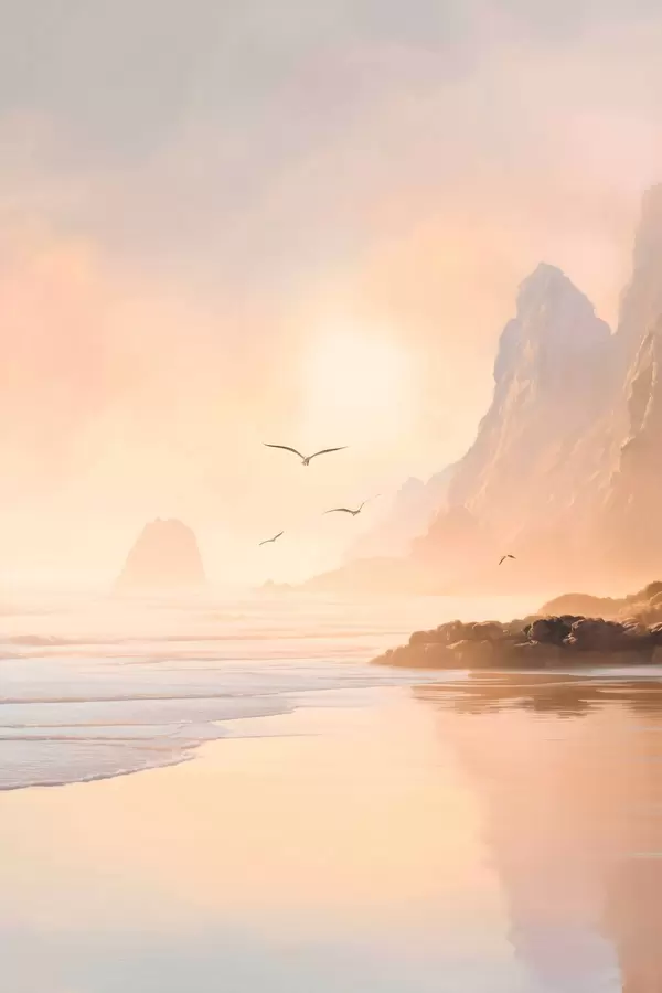 Постер на стіну світанок над океаном на тлі гір Nr f47690