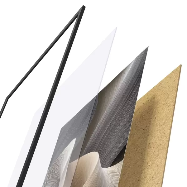 Постер складається з рами, оргскла, надрукованого зображення та підкладки з ДСП. Завдяки кріпленням на звороті плакат можна одразу ж повісити на стіну.
