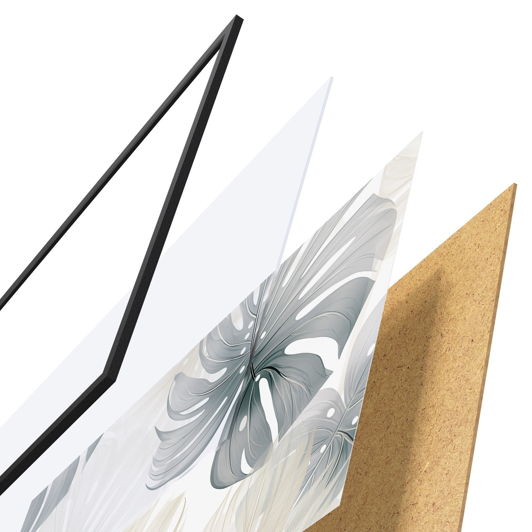 Постер складається з рами, оргскла, надрукованого зображення та підкладки з ДСП. Завдяки кріпленням на звороті плакат можна одразу ж повісити на стіну.