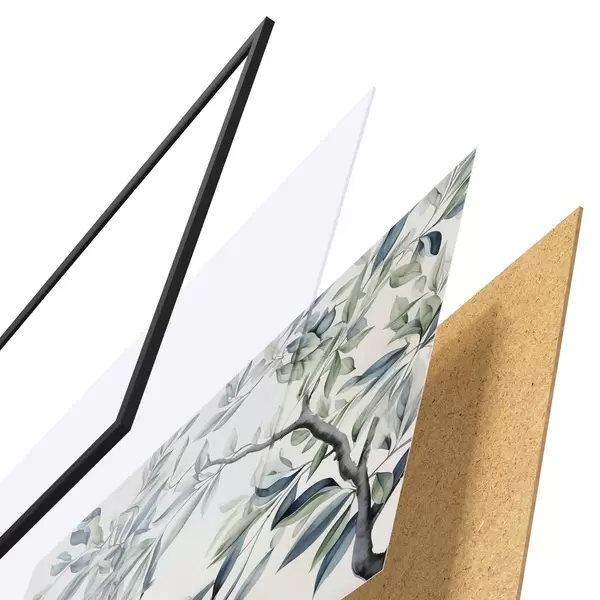 Постер складається з рами, оргскла, надрукованого зображення та підкладки з ДСП. Завдяки кріпленням на звороті плакат можна одразу ж повісити на стіну.