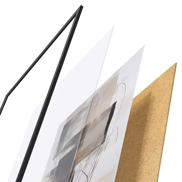 Постер складається з рами, оргскла, надрукованого зображення та підкладки з ДСП. Завдяки кріпленням на звороті плакат можна одразу ж повісити на стіну.