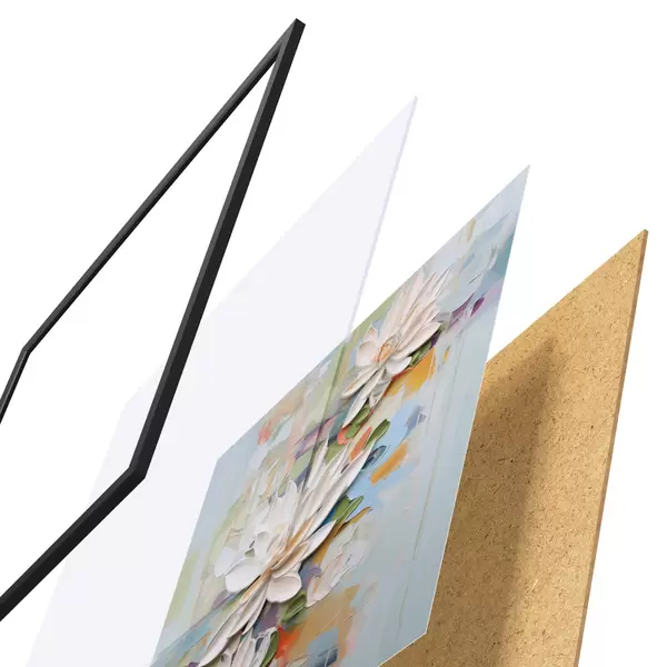 Постер складається з рами, оргскла, надрукованого зображення та підкладки з ДСП. Завдяки кріпленням на звороті плакат можна одразу ж повісити на стіну.