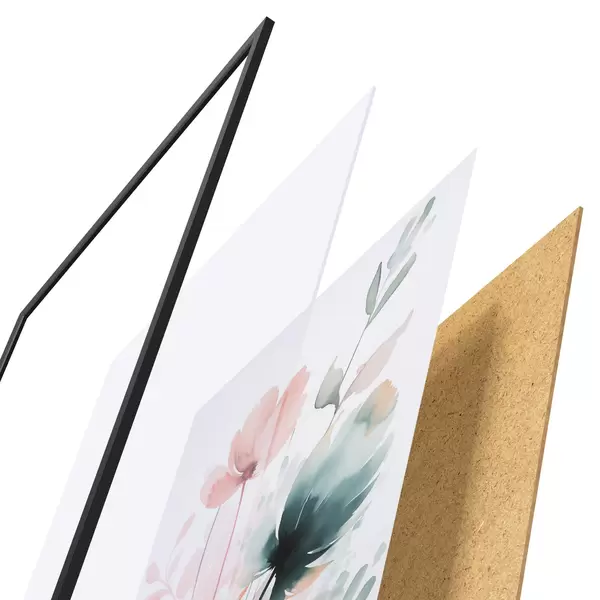 Постер складається з рами, оргскла, надрукованого зображення та підкладки з ДСП. Завдяки кріпленням на звороті плакат можна одразу ж повісити на стіну.