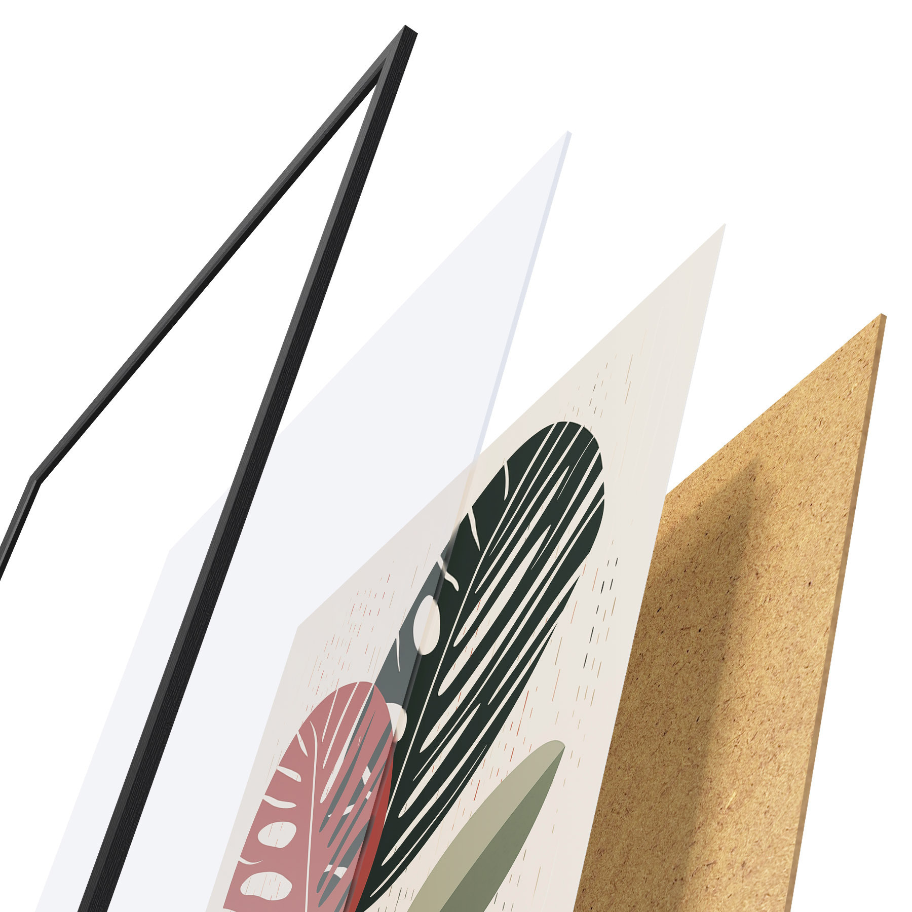 Постер складається з рами, оргскла, надрукованого зображення та підкладки з ДСП. Завдяки кріпленням на звороті плакат можна одразу ж повісити на стіну.