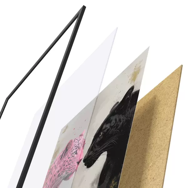 Постер складається з рами, оргскла, надрукованого зображення та підкладки з ДСП. Завдяки кріпленням на звороті плакат можна одразу ж повісити на стіну.