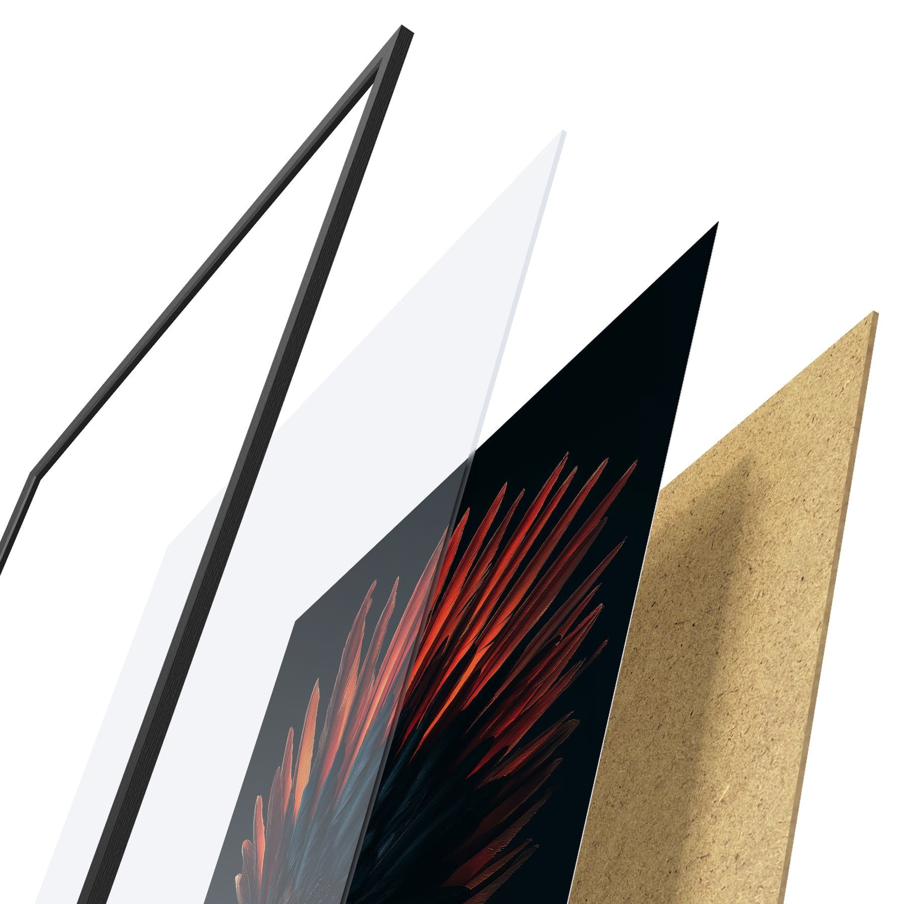 Постер складається з рами, оргскла, надрукованого зображення та підкладки з ДСП. Завдяки кріпленням на звороті плакат можна одразу ж повісити на стіну.